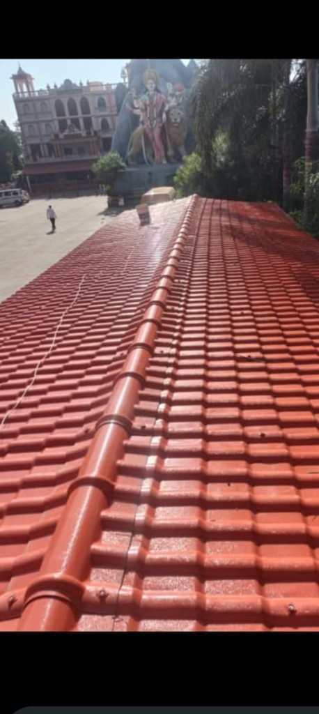 UPVC tiled roof sheets in 2.5 mm thickness, available in terracotta orange and grey. Lightweight, corrosion-free, and designed for long-lasting, low-maintenance roofing on temples, villas, farmhouses, sheds, and commercial buildings.